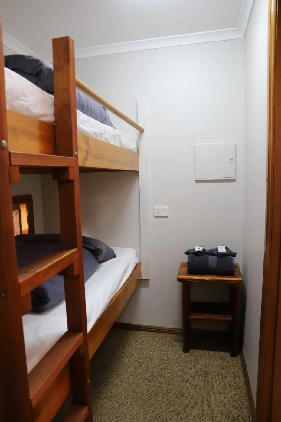Fitzroy apartment features a large bedroom with Queen bed, large combined lounge/dining, fully equipped kitchenette & bathroom with shower/toilet, Reverse Cycle air-conditioning, TV and is a perfect choice for those who enjoy a little more space than our cabins offer.